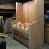 De winkel is in samenwerking met de Larense René Bruns ontworpen en gemaakt. Uitgangspunt bij het ontwerpen en realiseren van onze winkel was dat we lokale ondernemers deze opdracht gunden. Naast de uitvoering door het bouwbedrijf is bijvoorbeeld het metaalwerk, glaswerk, natuurrubber aan de wand en het schilderwerk door Larense ondernemers uitgevoerd. Al het houtwerk is gemaakt door René Bruns en de grote Amerikaanse eik, die tot 2006 naast de kerk in Lochem stond, is verwerkt in onze winkel. Verder komt duurzaamheid terug in onze winkel door het gebruik van ledverlichting.